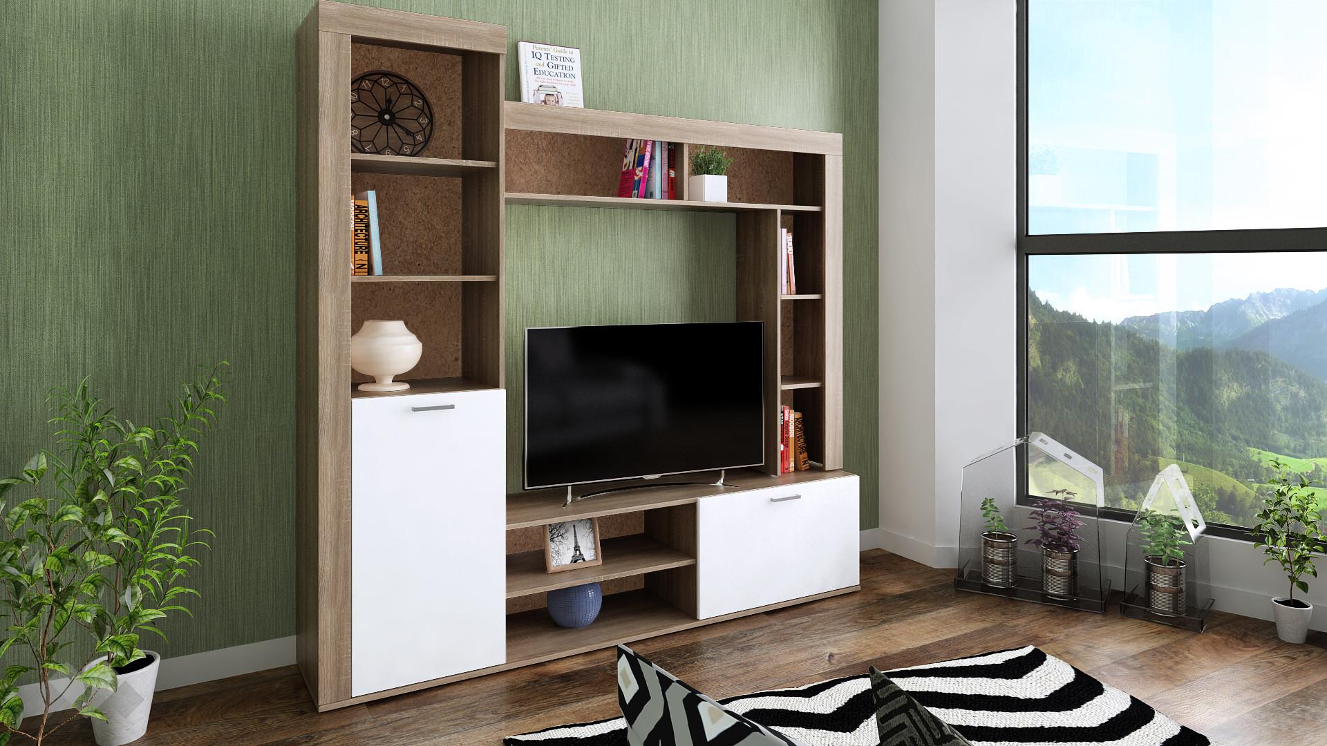 Секция Шоу ти предлага всичко, от което се нуждаеш – ТВ шкаф с отворени рафтове и затворен шкаф за цялата ти съпътстваща техника. Висок шкаф, който предоставя отворени рафтове, на които можеш да подредиш книги или красиви предмети, и шкафче с врата, в което можеш да скриеш вещите си. На етажерката можеш да разположиш любими снимки, сувенири от пътувания или модерна декорация – изборът е твой!