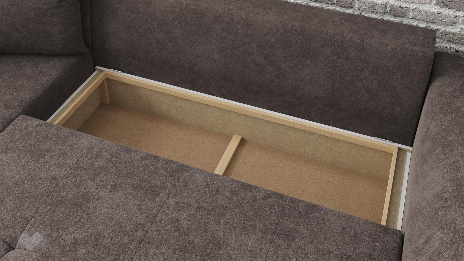 Освен това, ъгловият диван Сиера има ракла, която предлага дискретно място за съхранение на завивки, възглавници и други вещи, които би искал да са ти под ръка, но същевременно прибрани. Благодарение на функцията сън, диванът за секунди се трансформира в просторно легло с площ за сън 154/246 см - удобно решение както за гости, така и за ежедневна употреба.
