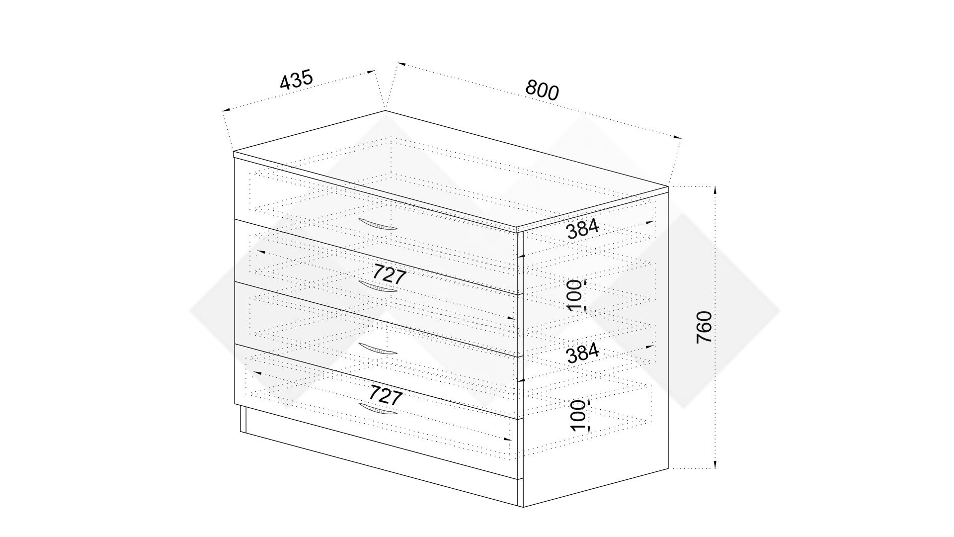 Благодарение на четирите просторни чекмеджета, скринът ще ти осигури достатъчно място за съхранение на дрехи, бельо, аксесоари или други лични вещи. Те са снабдени със сачмени водачи с пълно изтегляне и плавно прибиране, характеризиращи се със стабилност, устойчивост и издръжливост при по-голямо натоварване.