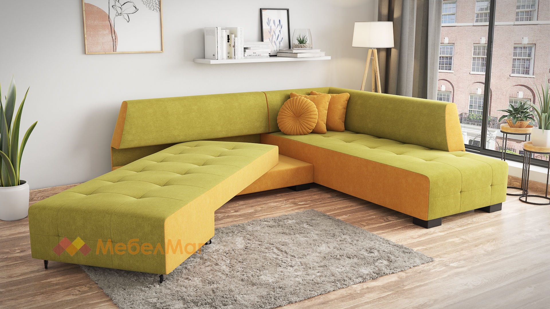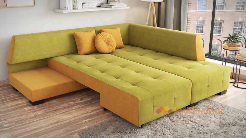 Ъглов диванСохозелено с манго с посока: десен ъгъл