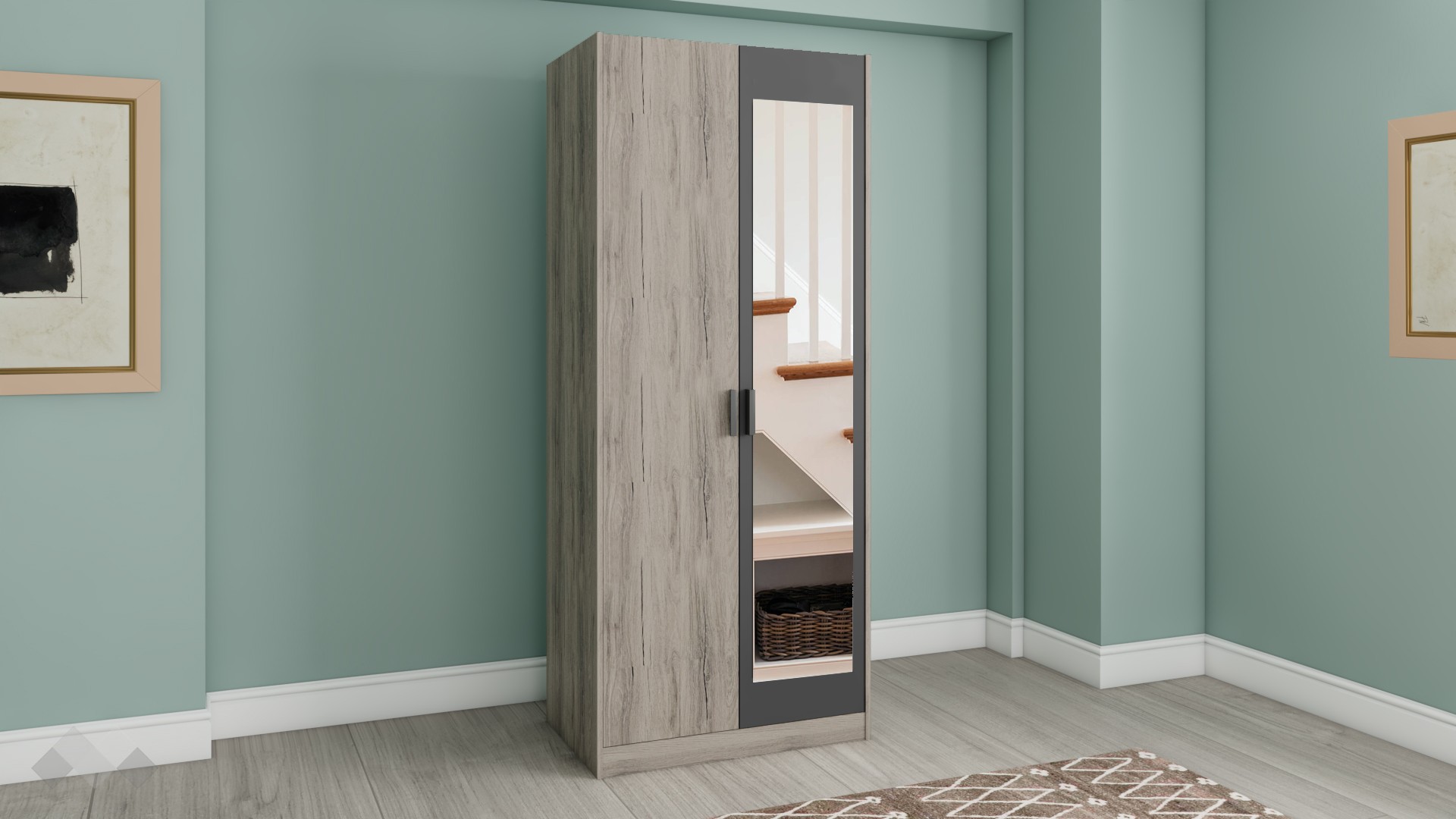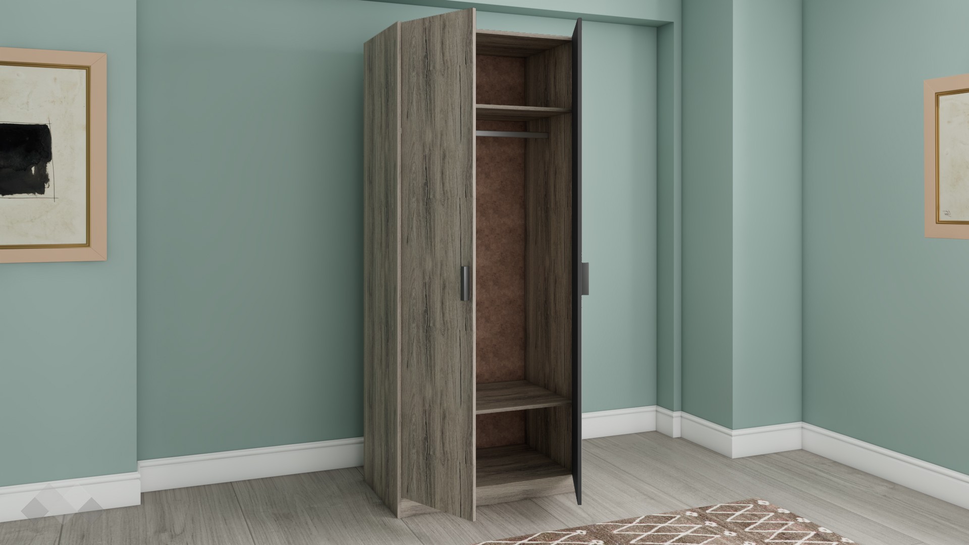 Гардероб Спирит е класически гардероб с компактна форма. Той е двукрилен, с 2 рафта и лост за закачалки. Благодарение на практичното разпределение, ще можеш да подредиш прилежно всички дрехи и аксесоари. Можеш да използваш рафтовете за съхранение на сгънати дрехи, а на лоста да закачиш всичко, което искаш да бъде готово за обличане.