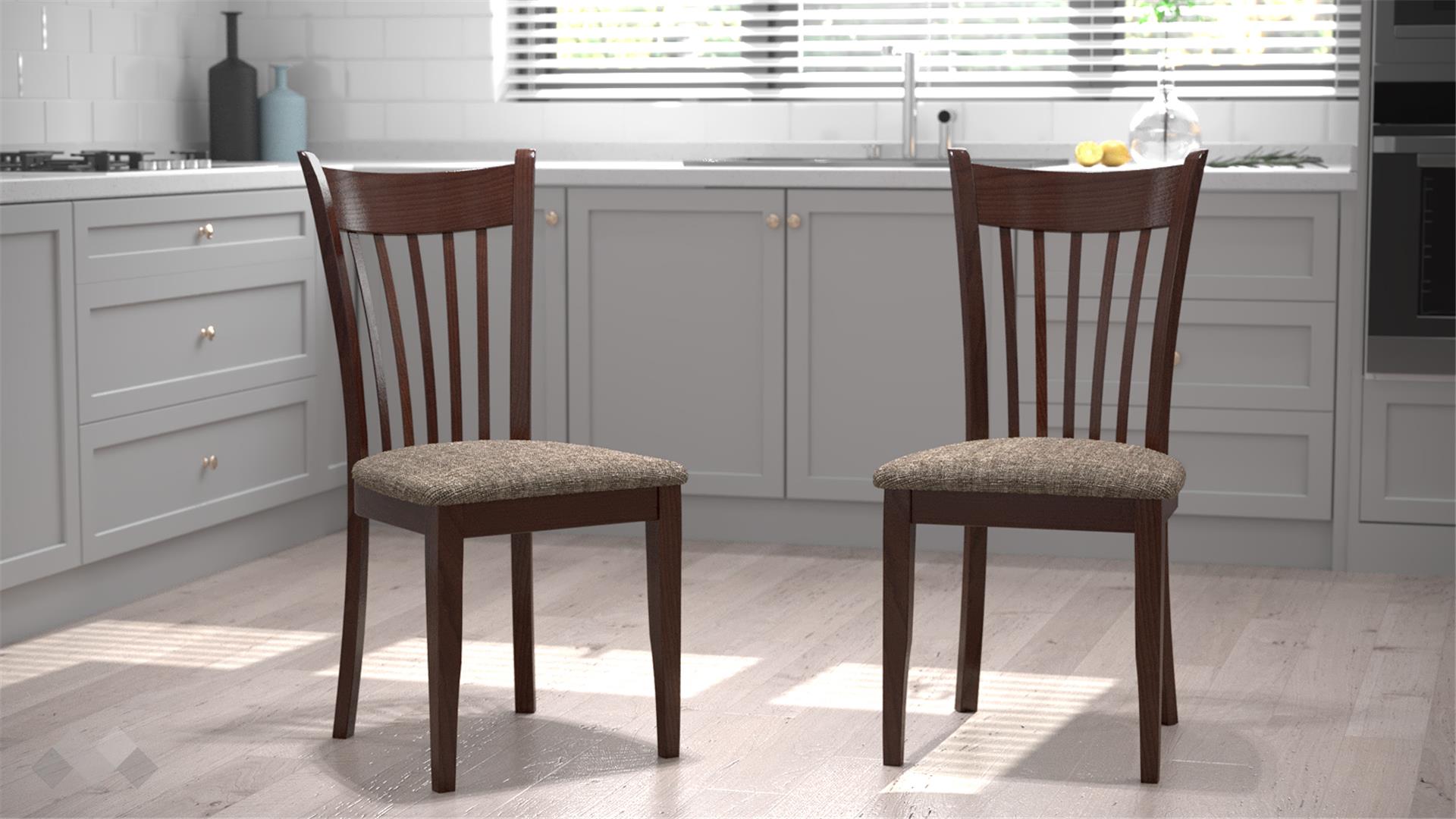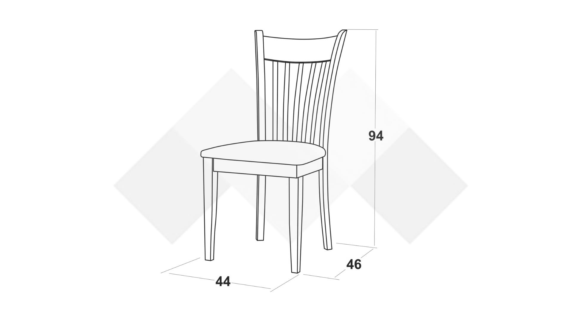 Столът е със здрава конструкция от естествена букова дървесина за устойчивост и стабилност, а лаковото покритие добавя елегантност. Седалката е проектирана с твърда основа, тапицирана с дунапрен за повече комфорт при седене и завършен със здрава текстилна дамаска, лесна за поддръжка.
