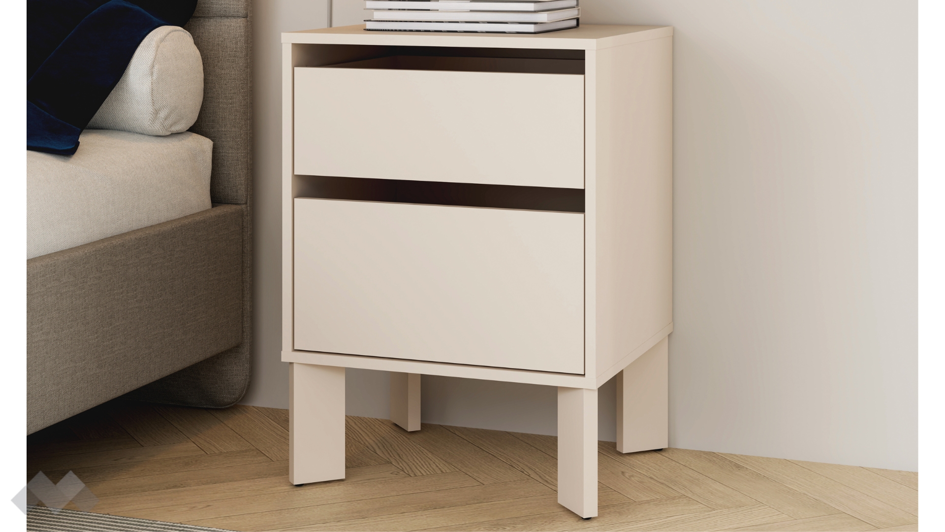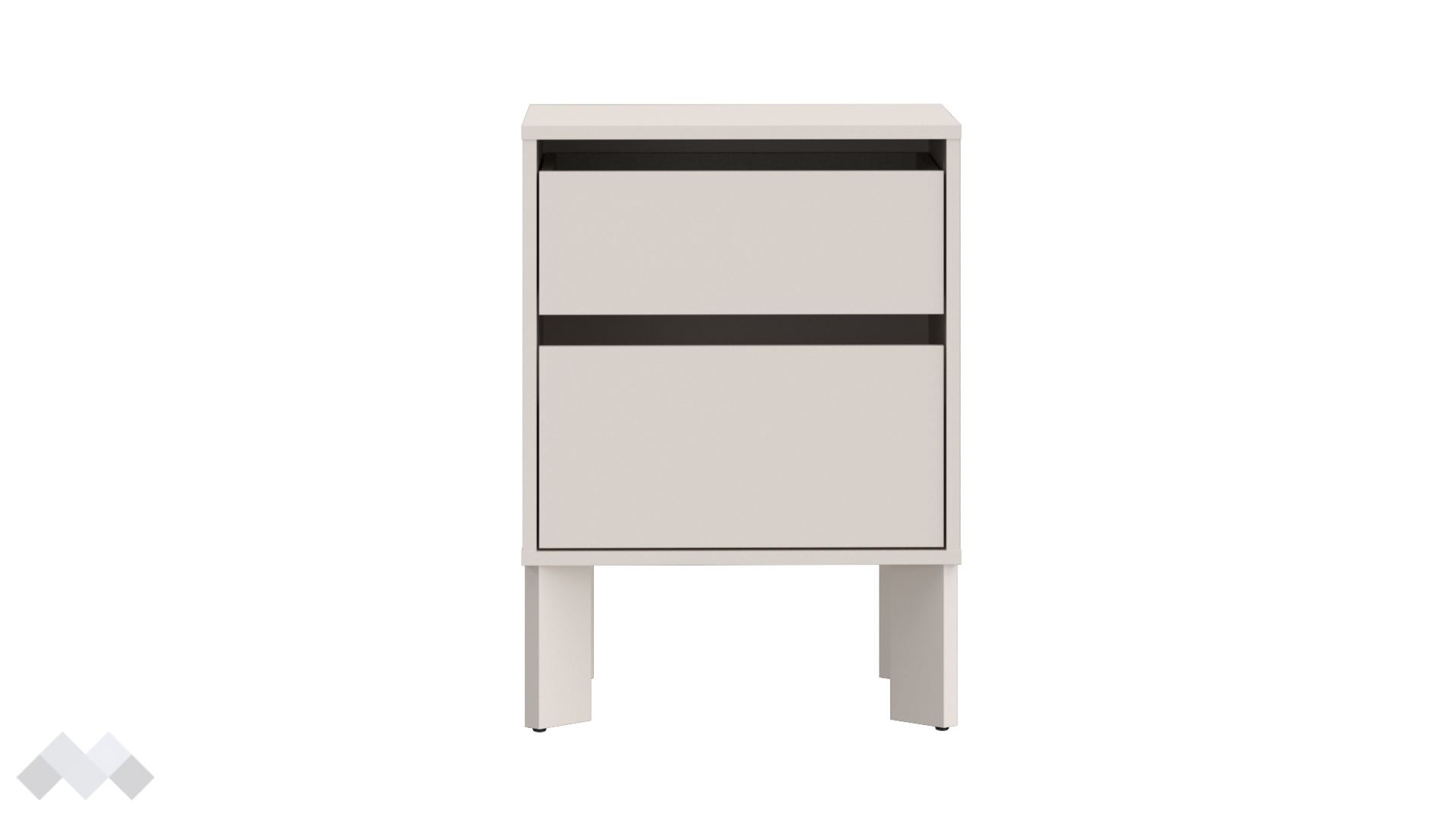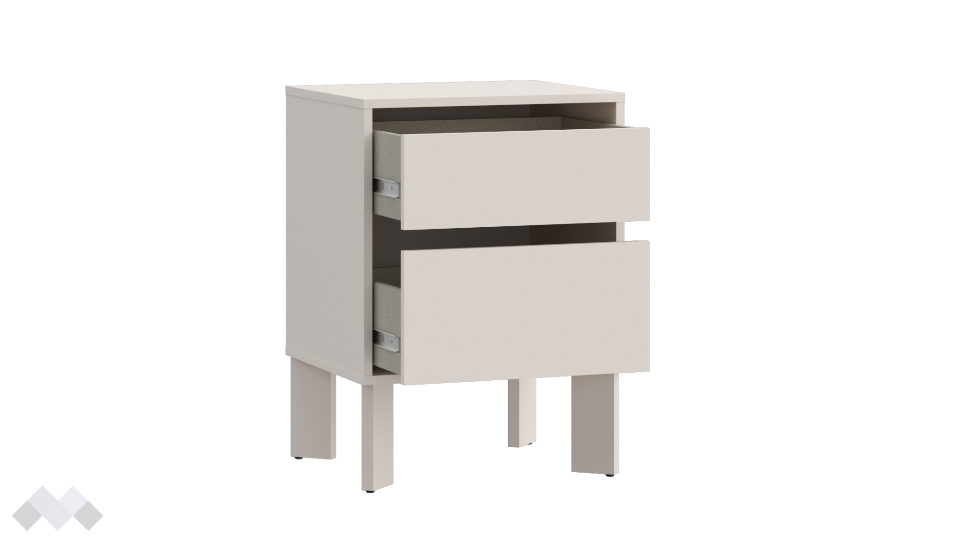 Моделът разполага с две чекмеджета, което е подходящо за съхранение на аксесоари, документи или други дребни предмети. Горната повърхност може да се използва за лампа, книга или декорация, допринасяйки за уютната атмосфера в помещението.