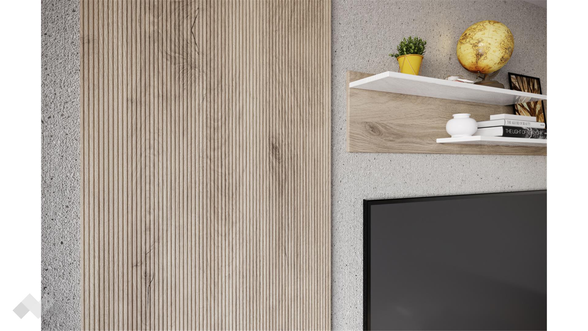 За разчупената визия на модела допринася гърбът, изработен от 18 мм МДФ. Със своята релефна текстура и цвят сонома той ще придаде интересен и завършен вид на стаята, като се превърне в акцента, от който твоя хол се нуждае.