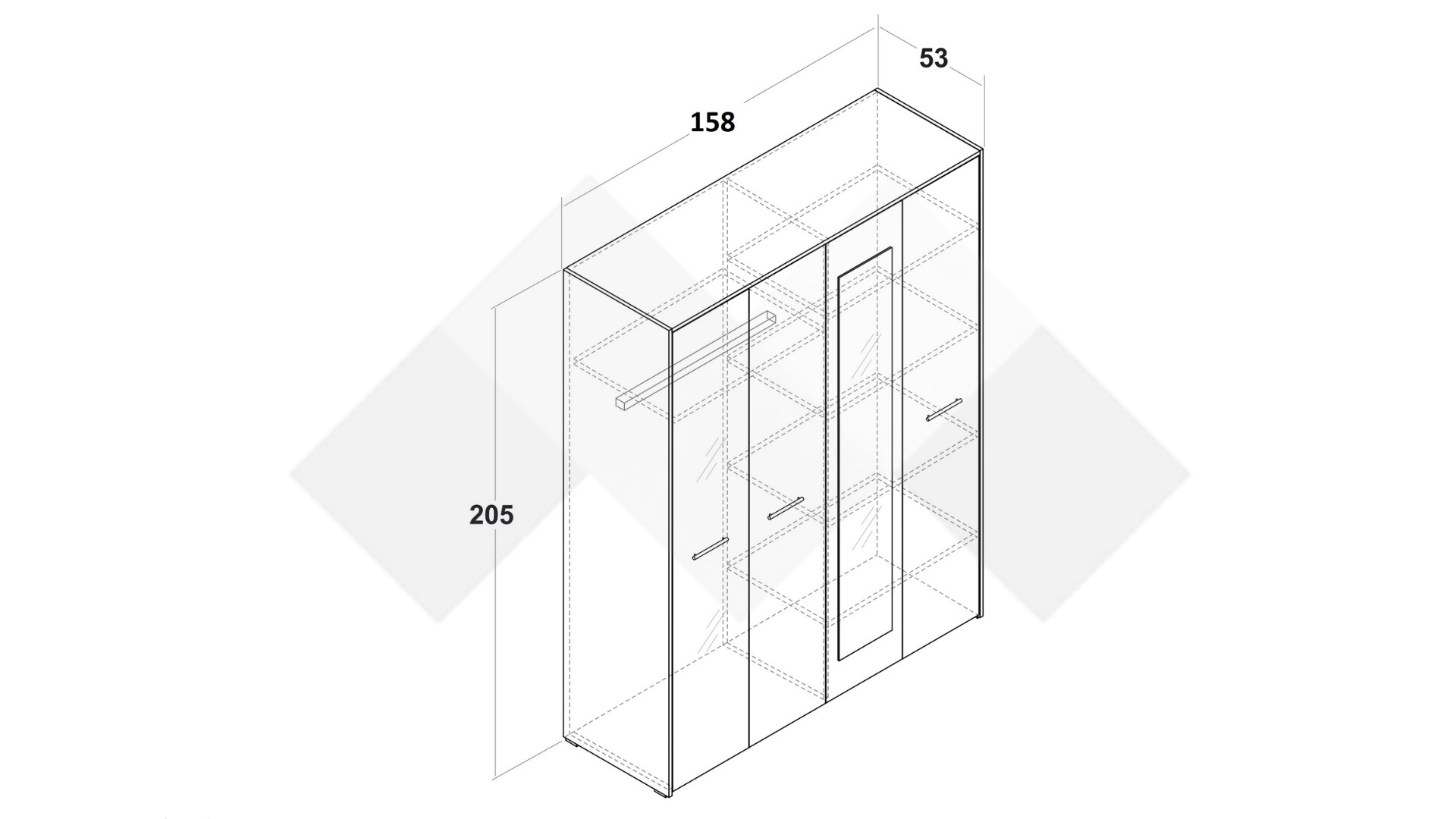 ✓ четирикрилен ✓ огледало ✓ 5 рафта ✓ лост за закачалки ✓ практично разпределение ✓ модерен декор ✓ качествена изработка