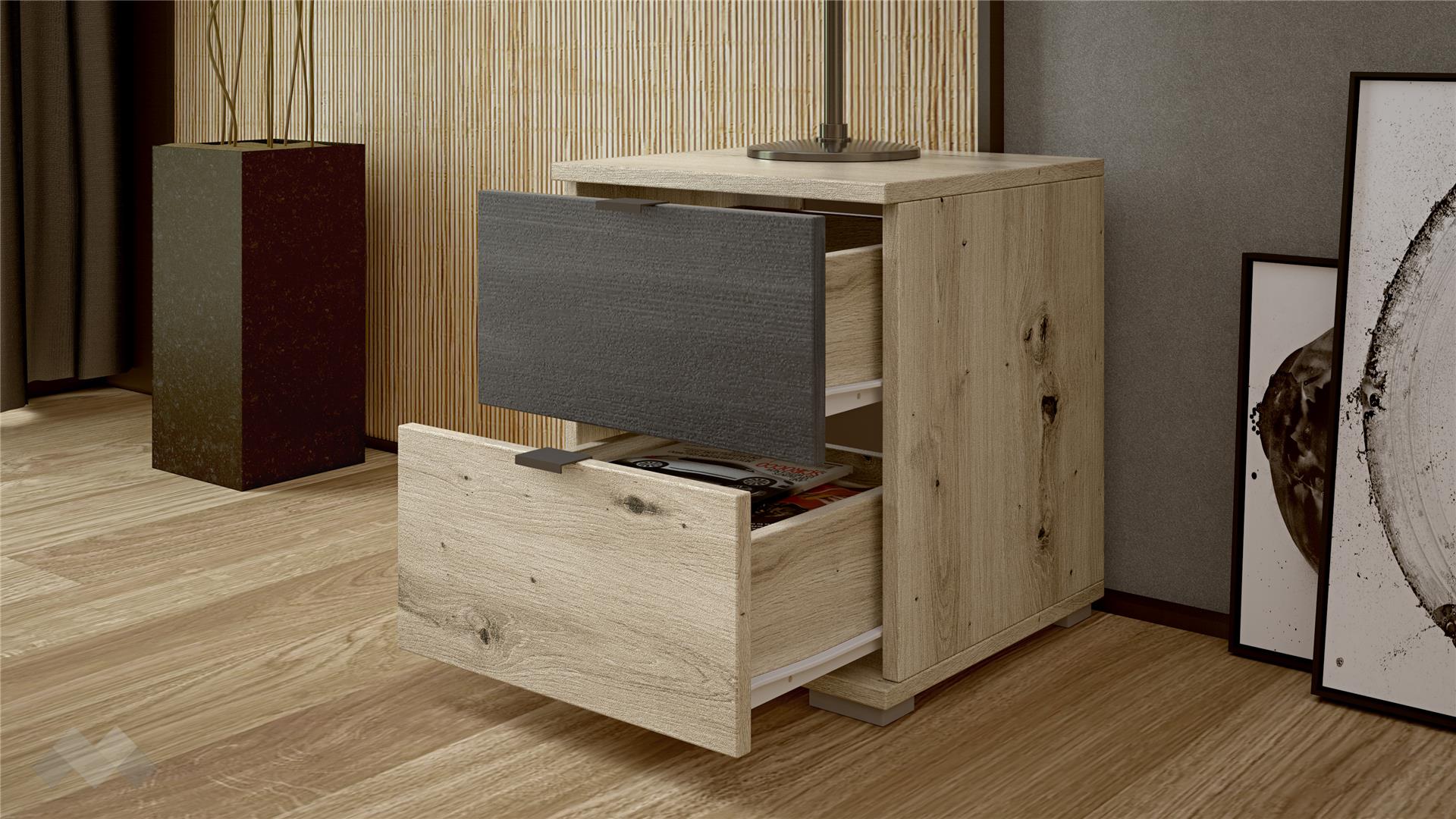Нощният шкаф ти предоставя две чекмеджета и удобен плот на оптимална височина, за да имаш всичко за спокоен сън на една ръка разстояние - чаша вода, любима книга или нощна лампа.