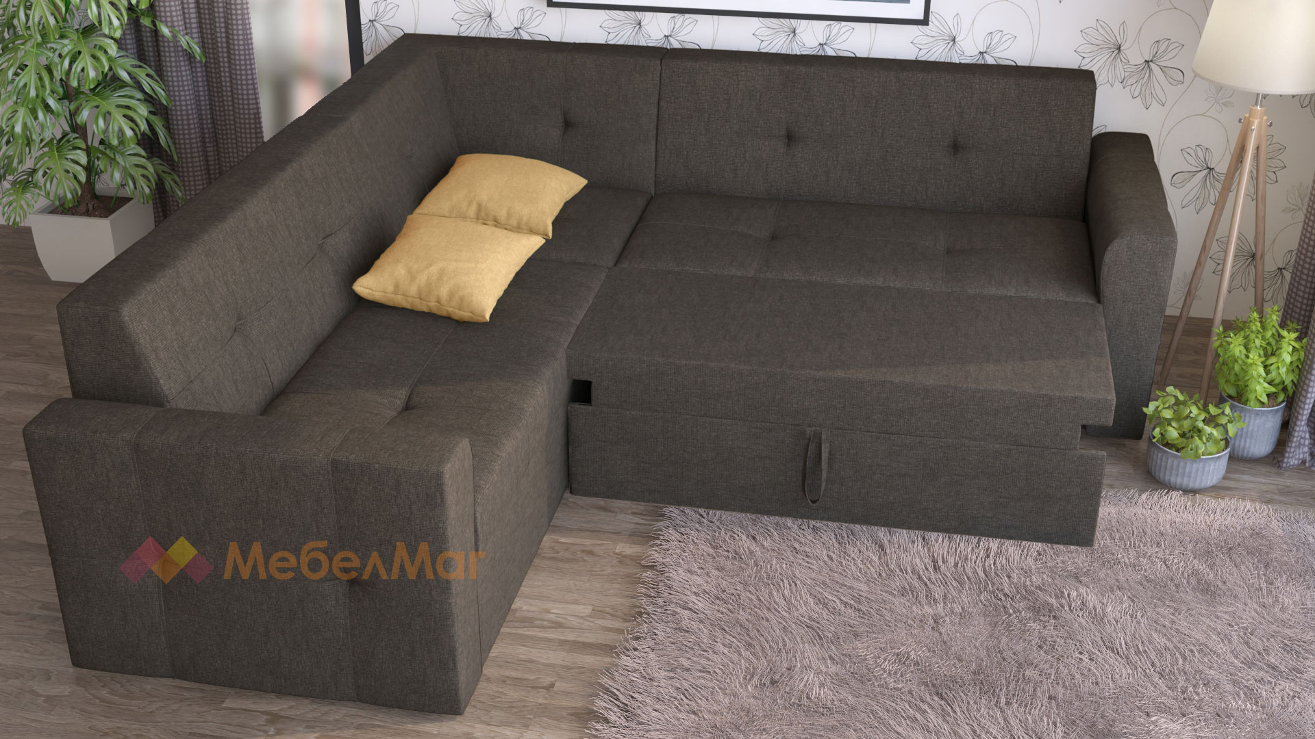 Ъглов диван Виола разполага с функция сън с изтеглящ се подматрак, като площта за спане е с размер 130/182 см. Разполагаш със 3 броя малки декоративни възглавнички за по-голямо удобство.