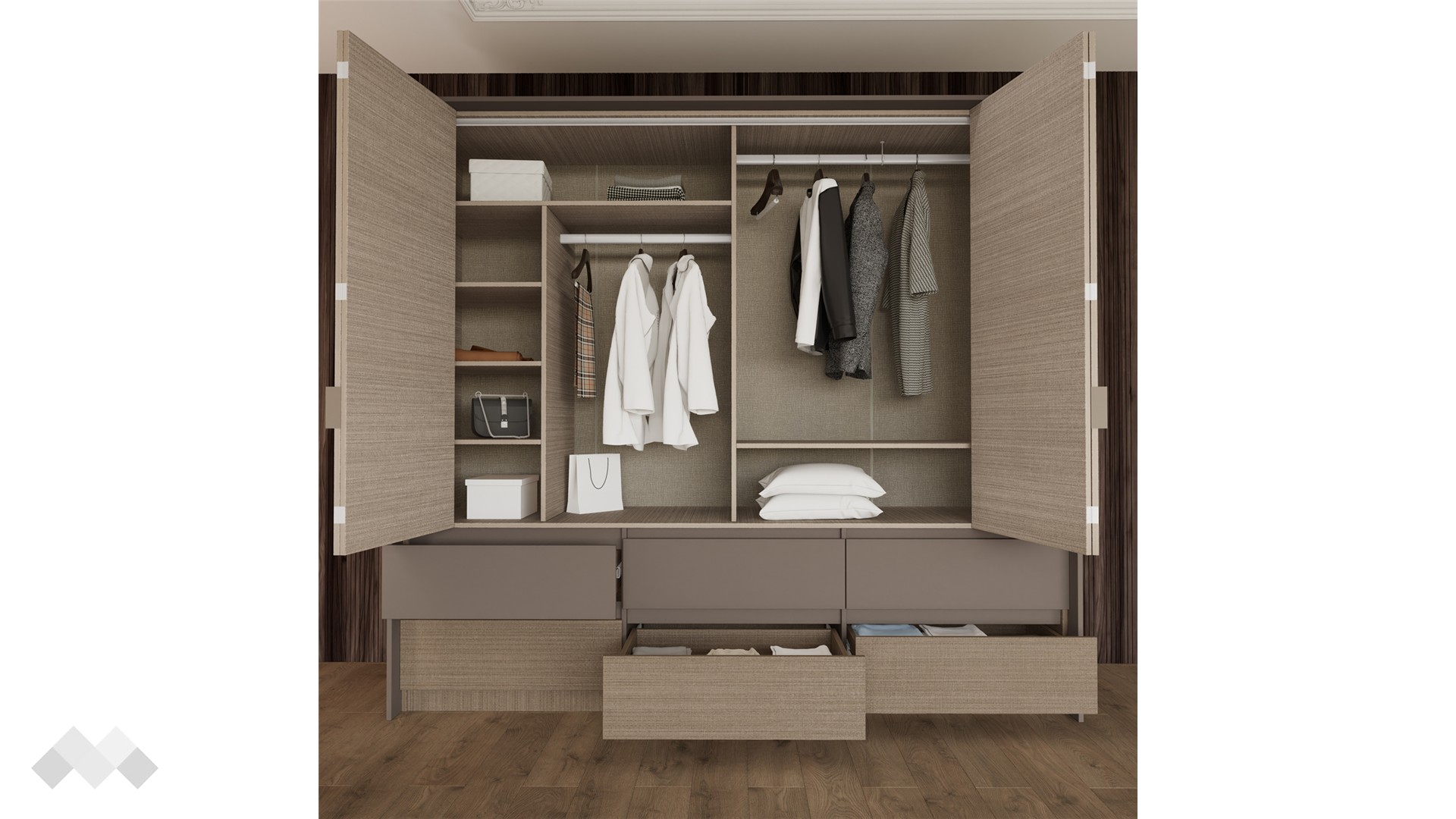 Гардеробът е неотменима част от всяка спалня, предоставяйки не само място за съхранение, но и допълнителен комфорт и удобство. Един добре проектиран гардероб може значително да подобри функционалността на стаята, затова ти представяме четирикрилен гардероб Захир.