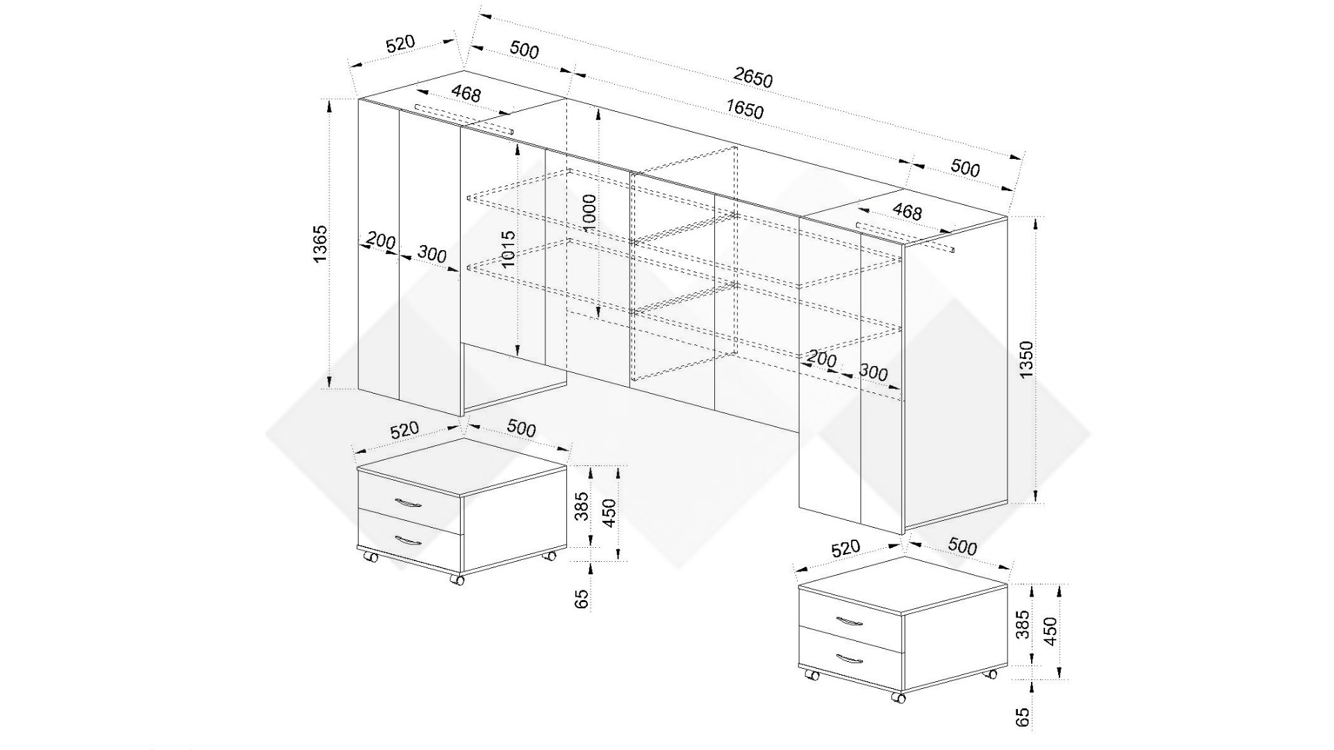 Гардероб: Д: 265 см Ш: 52 см В: 136.5 см