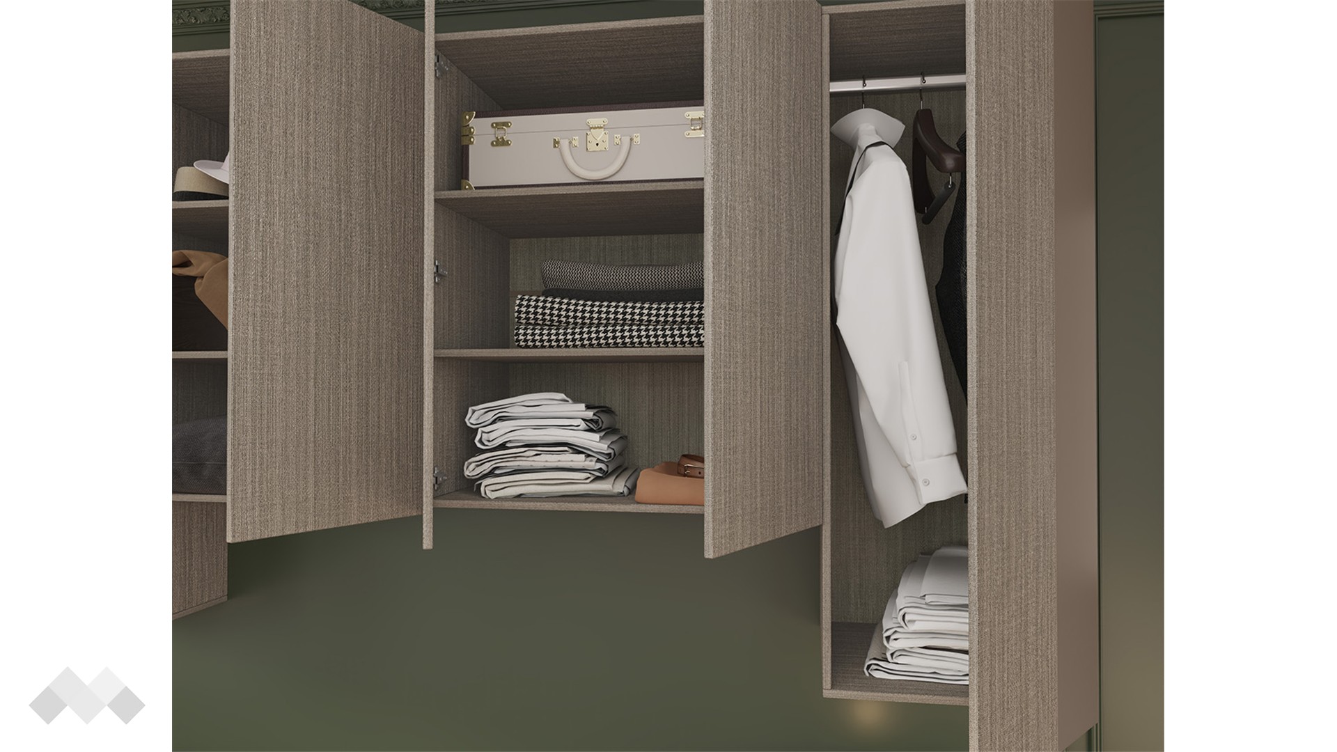 Гардеробът е проектиран така, че да се използва пространството над леглото, предоставяйки максимално удобство и лесен достъп до съхраняваните вещи. С него ще разполагаш с две просторни отделения с лостове, в които можеш да закачиш тоалетите си на закачалки. Сгънатите дрехи, кутии за съхранение или други аксесоари ще намерят място в двете отделения с рафтове.